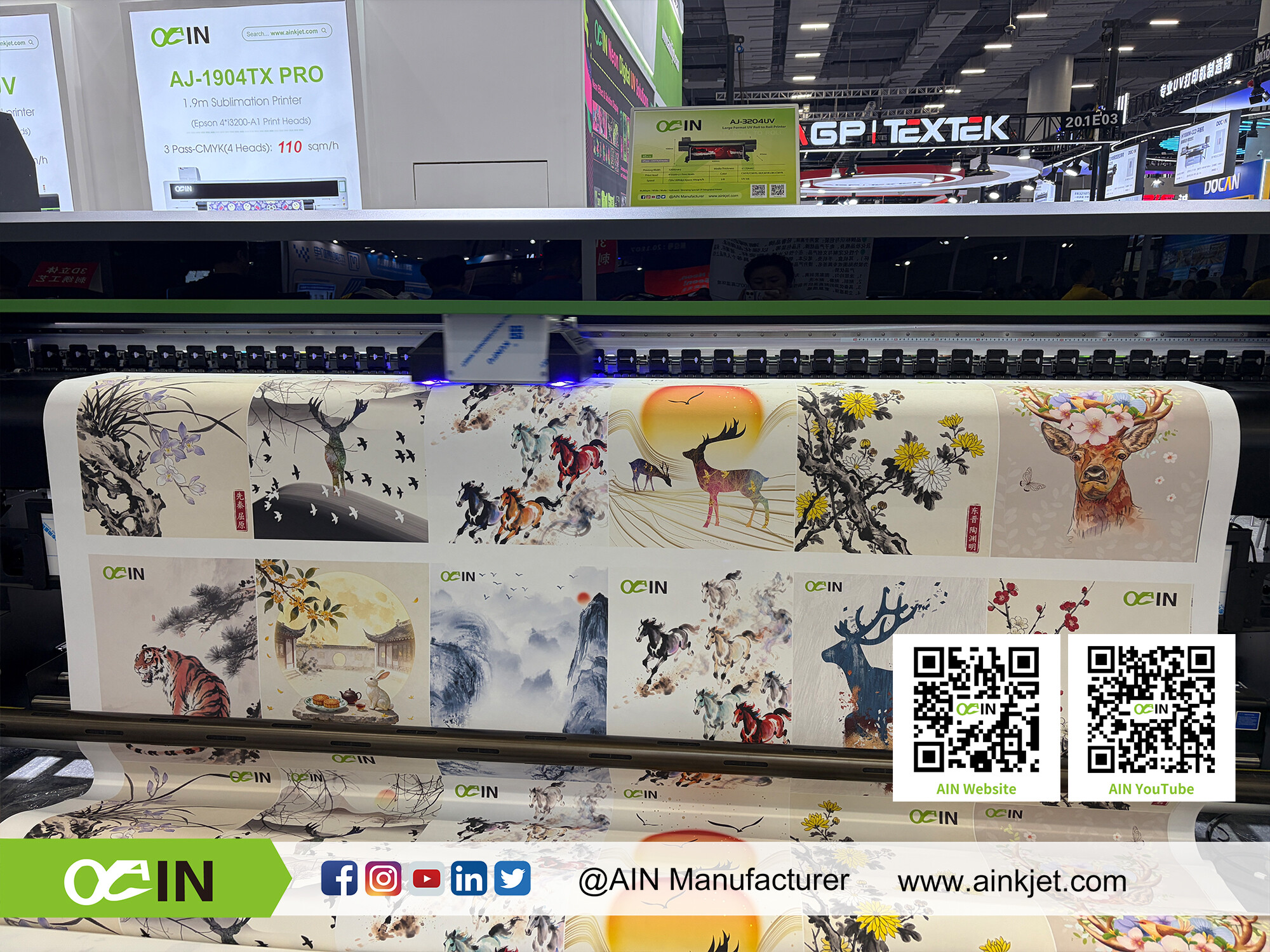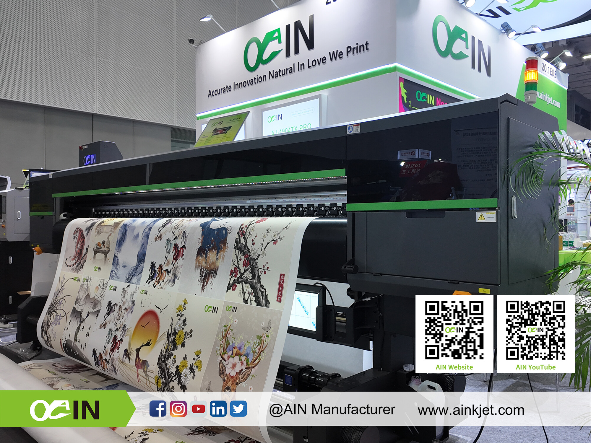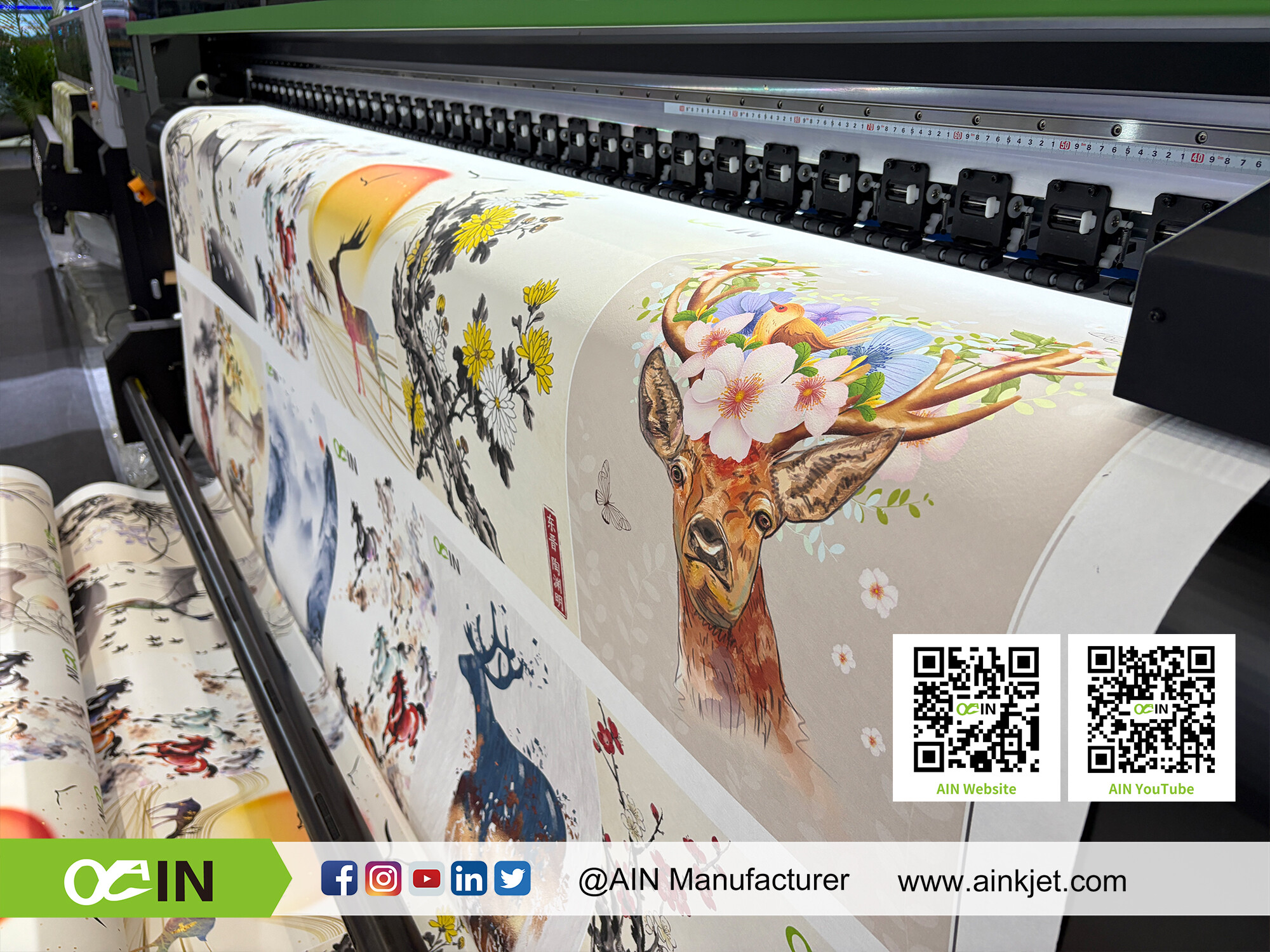 AIN Large Format UV Roll to Roll Printer Suitable for light box posters, car stickers, advertising hoardings, all kinds of fabrics, wallpaper, canvas, transparent stickers and other advertising and decorative media printing Environmental protection and energy saving Adopting UV-LED technology, the ink is fast-setting and energy-saving, in line with international standards, odorless and pollution-free. |