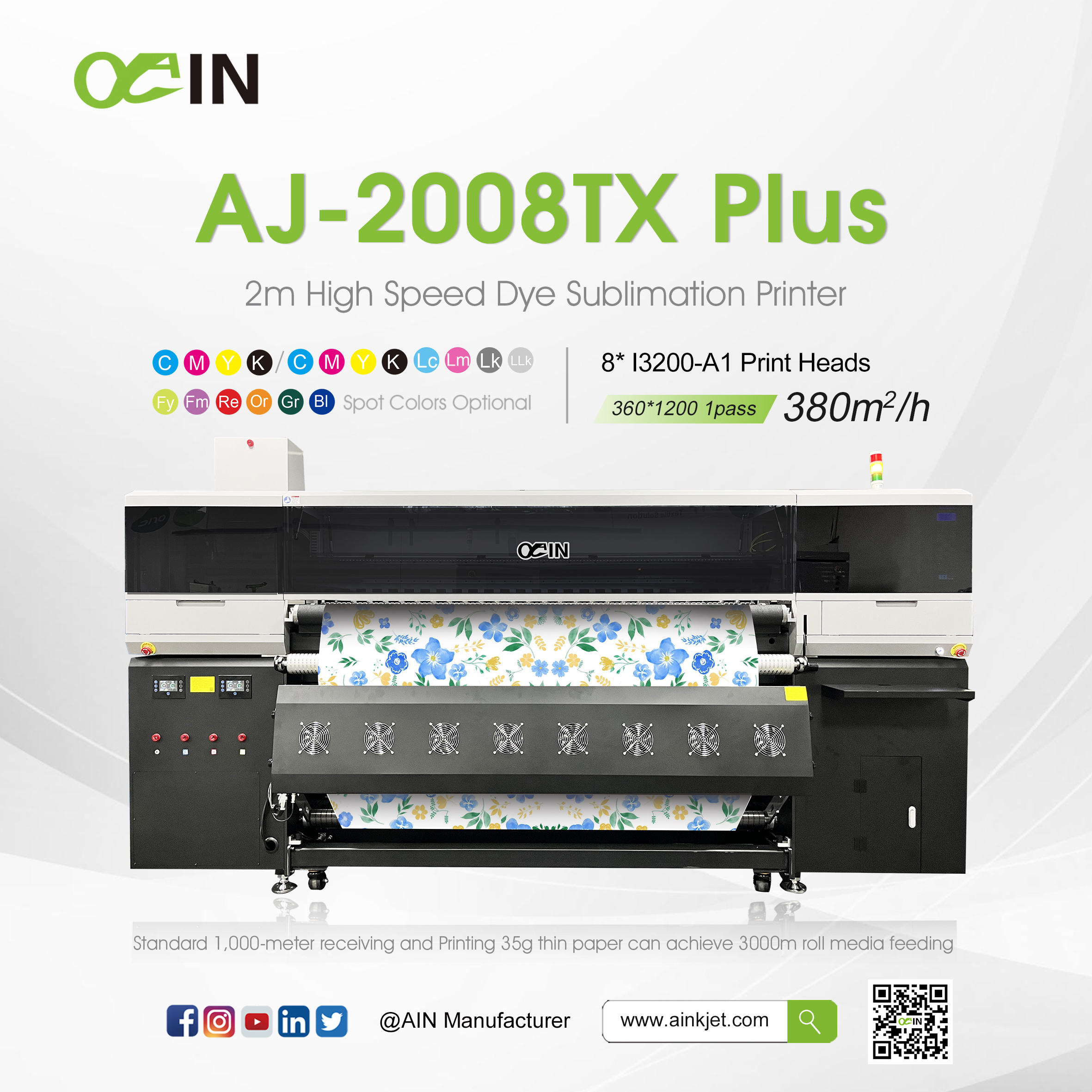 Tanto las impresoras de sublimación como las de impresión directa sobre textiles son ejemplos de nuestra experiencia e ingeniería: alto rendimiento, confiabilidad y precisión. Con la impresora de la serie Ainkjet, puede maximizar la producción mientras