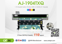 Equipped with 4*i3200 print heads (high-speed, 1.9m width) and air axis + wall panel structure (easy media handling, accuracy & lifespan), it covers textile applications like clothing, home textiles and flags.